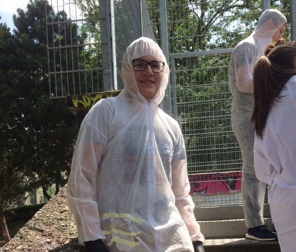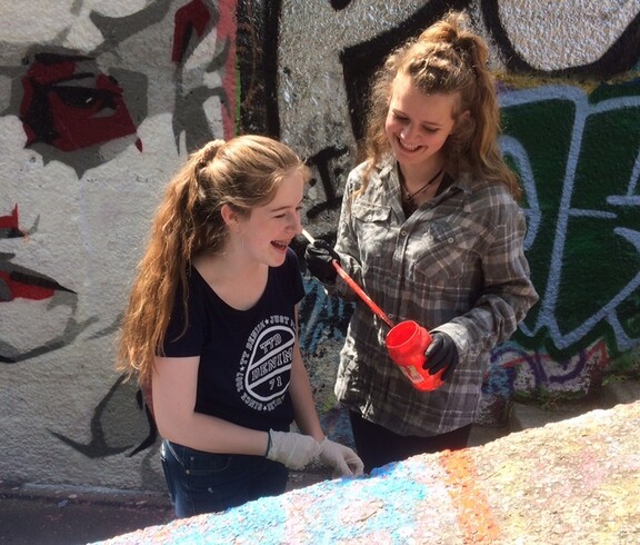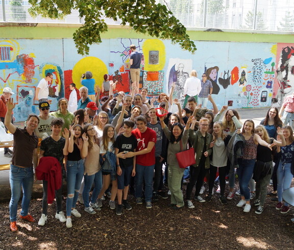 KlientInnen mit Beeinträchtigung und MitarbeiterInnen von Jugend am Werk, AnrainerInnen und nicht zuletzt unsere SchülerInnen und LehrerInnen malten gemeinsam. Themen wie Freundschaft, Zukunft und Glück standen im Mittelpunkt, feiert doch Jugend am Werk ein schönes Jubiläum. Seit 30 Jahren bietet der gemeinnützige Verein Tagesstrukturen für Menschen mit Behinderung an.